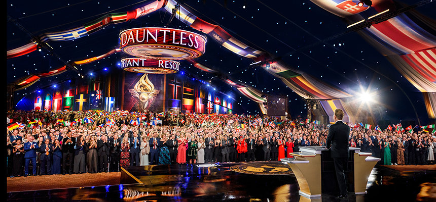 As the global congregation traversed the vibrant ruby-red carpet, they reveled in the enormous Grand Marquee and nearly blew the roof off as Mr. Miscavige arrived onstage to a ground-rumbling ovation lasting minutes. It was an expression not only of admiration for Scientology’s leader, but an acknowledgment of the enormity of the celebration at hand.