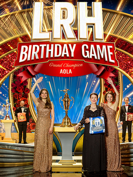 The evening’s momentum built steadily toward one of the most eagerly awaited pinnacles: the annual LRH Birthday Game—a global race among Scientology organizations to drive expansion. This high-spirited international contest spanned six continents and dozens of cities. It united Scientology Missions, Organizations, Advanced Organizations and Continental Liaison Offices in a race to fulfill LRH’s single wish: Expansion in the name of a Cleared Planet.